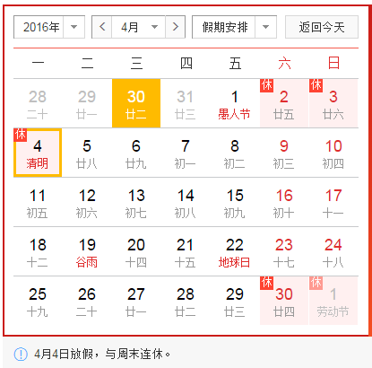 關(guān)于2016清明節放假安排的通知