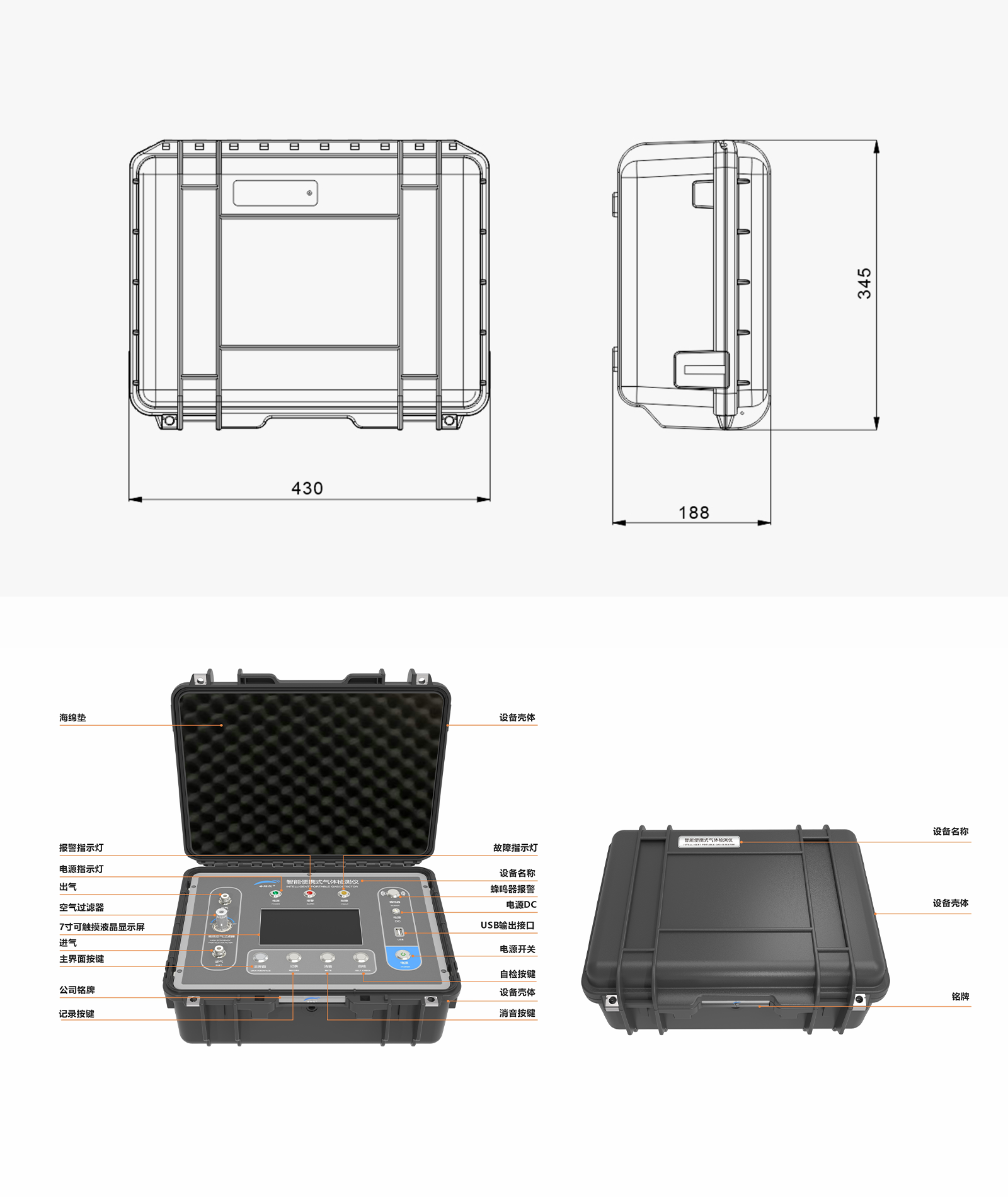 ☆ 七寸彩色高清觸摸液晶顯示屏,可顯示檢測數據、報警信息、時(shí)間、溫度、存儲、電量、充電狀態(tài)等信息,對設備進(jìn)行調節設置。